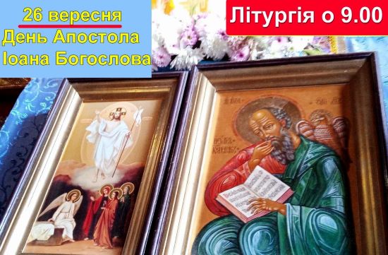 Святий Апостол і Євангеліст Іоан Богослов був сином рибака Заведея і Саломії. Коли на Йордані з’являється пророк Іоан Хреститель, який хрестить людей, сповіщаючи про початок Судних часів, батько відпускає молодшого сина подивитися, що це за вчитель і послухати його проповідь. Згодом Апостол Іоан разом із своїм товаришем Андрієм Первозванним стають послідовниками Івана Предтечі. Але потім його життя змінилось. 26 вересня Церква вшановує улюбленого учня Спасителя.