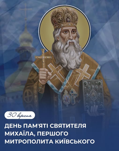 Хто стояв на початку виникнення Православної Церкви на наших землях? Кому ми зобов’язані тим, що Київ був і залишається одним із духовних центрів християнства? Відповідь на ці питання можна знайти, якщо звернутися до життя та подвигів першого митрополита Київського і всієї Руси святителя Михаїла Київського (Михаїла I), пам'ять якого вшановується двічі на рік, у тому числі 30 вересня за новоюліанським календарем.