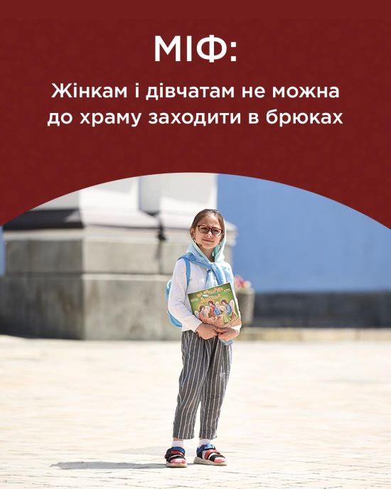 Продовжуємо спростовувати міфи, одним із яких є те, що жінкам, нібито, неможна заходити до храму у брюках. Немає в нашій Церкві такої заборони. Та й в інших Православних Церквах світу (окрім МП, очевидно) подібних правил, які би забороняли зараз жіноцтву в брюках приходити до храмів, не існує. Для наших священнослужителів важливим є не те, в якому одязі людина приходить до храму, а головне – з якими бажаннями та духовними потребами.