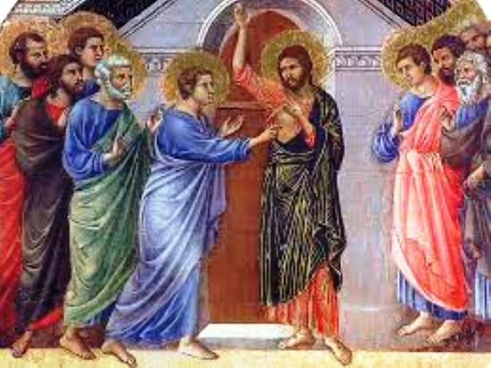 І ось ця людина, яка з такою вірністю готова була розділити зі Спасителем смерть, ставить іншим учням питання: Чи можливо це? Вони йому розповідають, що бачили воскреслого Христа, а він цьому не може повірити. Чому? Чи не тому, що до Святої П'ятидесятниці, до того, як Дух Святий зійшов на апостолів, вони залишалися тими ж боязкими, часто нерозуміючими, часто непевними людьми? Як Фома міг повірити, що воскрес Христос, коли єдине свідоцтво про Його воскресіння було в тому, що ці учні радіють – і все одно залишаються тими самими людьми, які не змінилися, які нічим не відрізняються від того, чим вони були раніше? Щоб прийняти звістку про воскресіння, йому була потрібна інша достовірність, ніж просто радісні слова апостолів, тому що він розумів, що якщо воскрес Христос, то все на світі змінилося, що останнє слово не за смертю, а за життям, що остання перемога не за людиною, а за Богом, що любов перемогла, а не ненависть, що ми живемо тепер в новому світі ,тому що Бог увійшов у цей світ і його перетворив в світ вічного життя… І коли Спаситель встав перед ним, Фома увірував, тому що в Спасителі було сяйво вічного життя, тому що Він постав перед учнями вже не як Ісус з Назарету, Який був їхнім учителем, а як воскреслий Господь, в силі і славі Свого Воскресіння – однак з руками й ногами, і боком, що були пробиті цвяхами та списом.