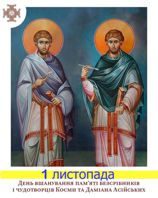 1 листопада за новоюліанським календарем Православна Церква України молитовно згадує пам’ять святих братів-чудотворців Косми та Даміана та їхньої матері преподобної Феодотії. Цікаво, що церква вшановує три пари святих, які жили в різні часи і в різних місцях, але Асійські найбільш відомі.