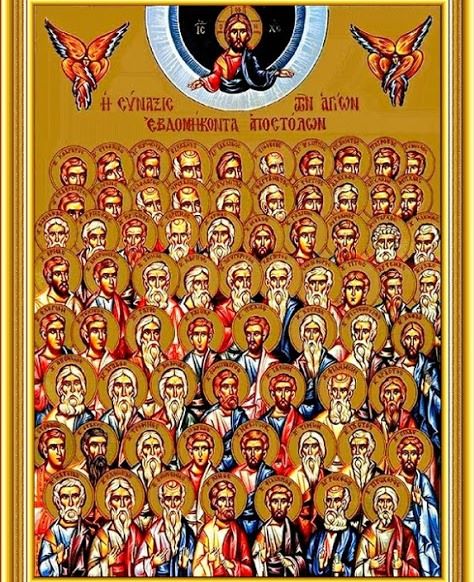 Після Зішестя Святого Духа апостоли почали проповідувати різними мовами в різних країнах, і деякі супроводжували апостолам з 12-ти, як святі євангелісти Марк і Лука, сподвижники святого апостола Павла Тимофій, учень святого євангеліста Іоанна Богослова святий Прохор і інші. Багато з них були в’язнями за Христа, багато хто прийняв вінець мученицької смерті.